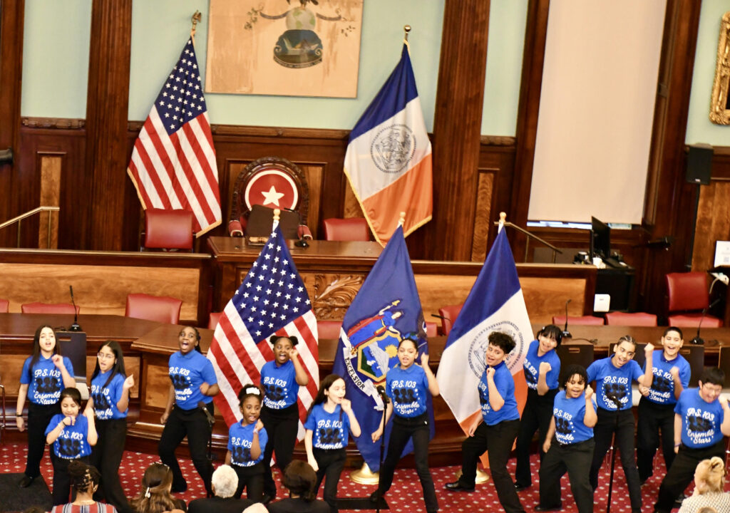 W części artystycznej piewały- rewelacyjnie!- dzieci z P.S.103. W ich szkole lekcje muzyki odbywają się dzięki non-profit organizacji Education Through Music NYC, która współpracuje ze szkołami podstawowymi i gimnazjami, zatrudnia nauczycieli, finansuje instrumenty, organizuje koncerty i daje możliwość kontaktu z najlepszymi nowojorskimi muzykami. Organizacja ta działa w ponad 50 szkołach na terenie miasta.