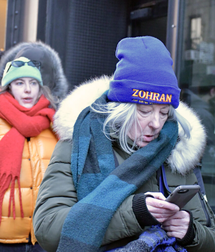 Ta dobra dusza przez ponad godzinę trzymała swoją komórkę tak, żeby wszyscy dookoła mogli skorzystać z transmisji. Wiele osób robiło to samo, a ponieważ niektóre stacje nadawały z- różnym- opóźnieniem, więc gdy jedni śpiewali, „Bread&Roses“ , inni wiwatowali na rzecz Berniego itd