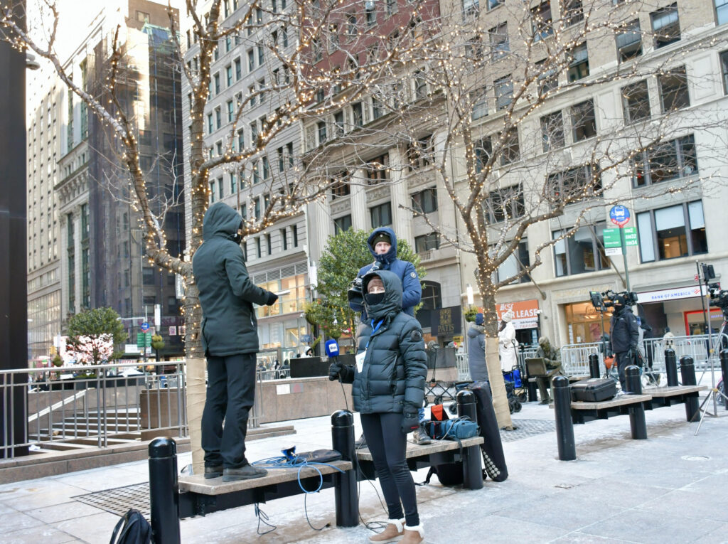 Zmarznięta ekipa RAI na trasie kolejki, daleko od City Hall, trudno powiedzieć, dlaczego tu, a nie tam…