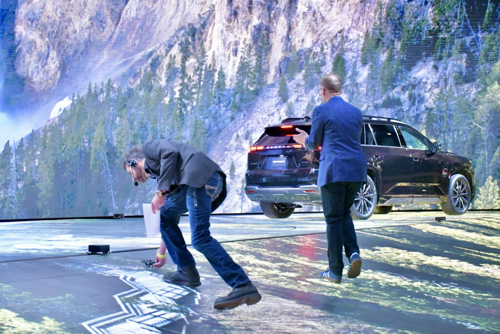 A także najbardziej konsekwentna. Firma ta zwiększyła w tym roku ilość drzew i zakątków do zwiedzania w swoim modelu parku narodowego, ziemia wirowała, księżyc lśnił, lodowce spływały. Szczęśliwie- drugi rok z rzędu! dzięki!- nie rozpylono sztucznych aromatów, było za to więcej świergotu ptaków oraz fruwało coś i świeciło. Wielkie świetliki, albo spadające gwiazdy; zdania były podzielone. Miły dodatek; optymistyczne przekazy na tablicach rejestracyjnych. Firma ta od lat prowadzi, także w trakcie NYIASA, akcje adopcji psów w ramach kampanii „Subaru Loves Pets“, dzięki czemu prawie tysiąc psów znalazło nowe domy, a sprzedawcy Subaru wspomagają schroniska datkami.