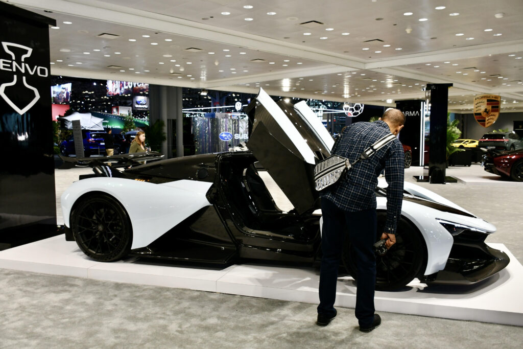 – Zachwycająca debiutantka. Aurora Agil, duńskiej marki Zenvo. Jeden z dziennikarzy zaglądając w jej wnętrze komentował, że ma najsilniejszy silnik V12 jaki kiedykolwiek zamontowano w auto do użytku zwykłego kierowcy, co chyba było emocjonalnym wyrażeniem podziwu dla hybrydy i mocy 1850 koni mechanicznych. Ktoś inny zachwycał się nietypowością nadwozia. Piękna linia, fakt. Przy otwartych drzwiach wygląda, jakby zrywała się do lotu. Przyspiesza od 0 do 100 km/h w 2,5 sekundy. No i niestety, niefotogeniczna.