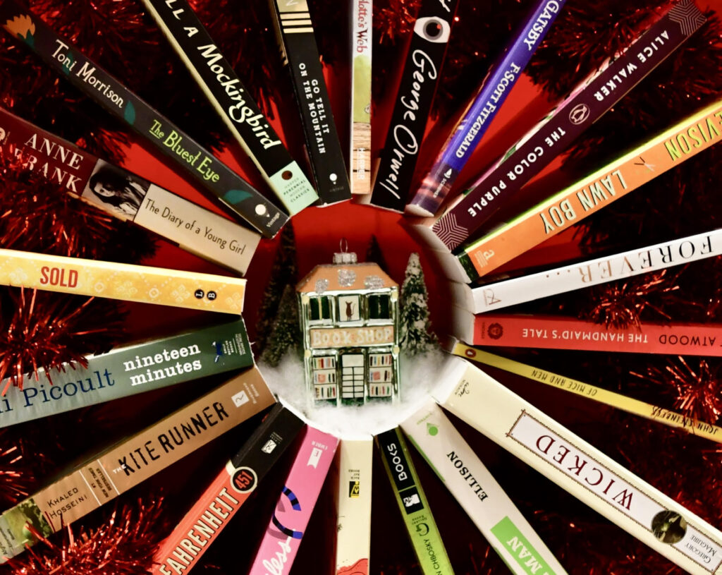 Wieniec utworzony z obwolut zbanowanych ostatnio książek. Tytuł: I’m at a Loss for Words